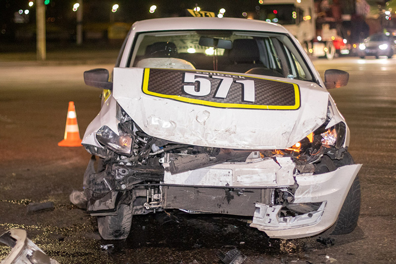 Авария случилась около 01:40. По словам свидетелей, автомобили двигались навстречу друг другу: такси со стороны проспекта Шухевича, а Kia по бульвару Перова. На перекрестке для обоих участников движения горел зеленый сигнал светофора, но парень на внедорожнике стал поворачивать налево прямо перед набравшим скорость Volkswagen и произошел удар.
